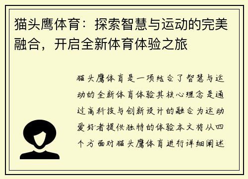 文章摘要:在体育行业的快速发展中,金博体育以其创新性的科技应用与领先的行业理念,成为了推动行业变革的重要力量。本文将从四个方面详细阐述金博体育如何引领行业变革,并探索未来体育科技创新发展新机遇。这些方面包括金博体育在数据科技上的领先应用、人工智能与智能硬件的结合、数字化转型对体育赛事的影响以及未来体...