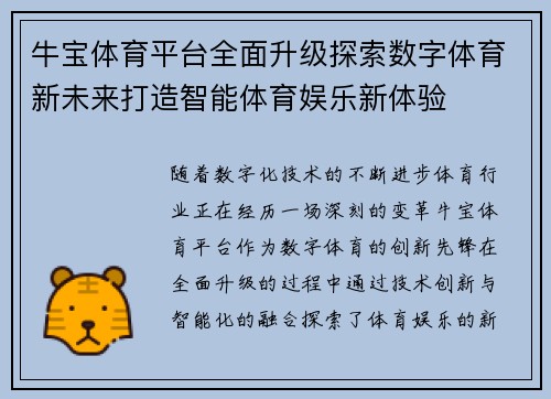 随着数字化科技的飞速发展,体育产业也迎来了巨大的创新和变革机遇。凯发体育,作为领先的体育科技企业,积极布局数字化平台,致力于推动体育产业的创新与发展。通过打造全新数字化平台,凯发体育不仅为传统体育产业注入了新的活力,还推动了体育文化、赛事运营、用户体验等多个领域的升级。本文将从四个方面详细探讨凯发体...